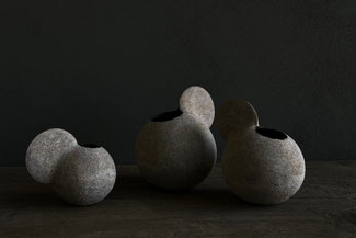 伊豆土を用いた球体の壺とオリジナル技法である砂鋳込みの食器を展示いたしました。